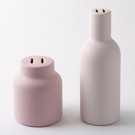 Dezeen • 1st November 2010 Pyggy Bank by Nendo Tokyo 2010: Japanese studio Nendo have created these bottle-shaped piggy banks with two coin slots that mimic a pig's snout. Called Pyggy Bank, the designs were created for an exhibition...